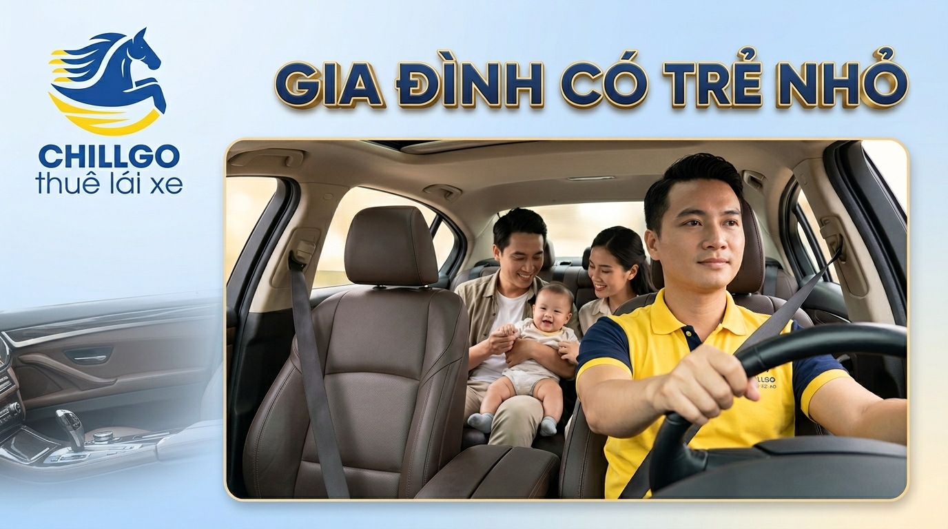 Giải pháp ChillGo: Hãy thuê tài xế ChillGo để lái xe của bạn. Tài xế được đào tạo lái xe an toàn, lịch sự và kiên nhẫn với gia đình. Trong lúc lái xe, bạn có thể ngồi cạnh vợ chăm sóc, hay ngồi hàng ghế sau chơi với em bé. Không cần lo lắng về giao thông hay an toàn – tài xế sẽ lo hết.